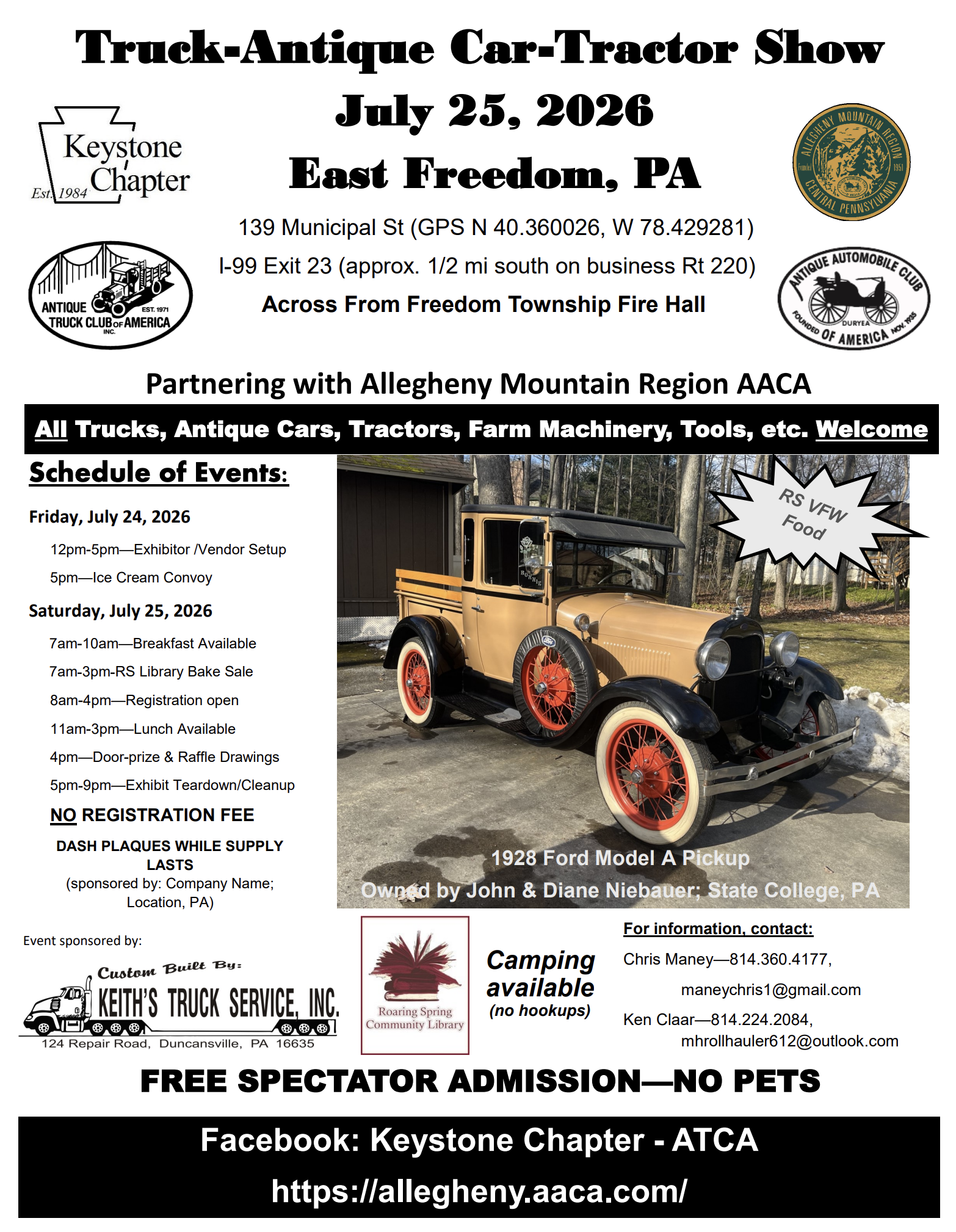 Food will be available from Local Burgy, The Farmer’s Daughter Apple Fritters, and Ole Buckets Maple Kettle Corn. Our raffle table will be filled with thousands of dollars in prizes. We will also have our $100 cash prize raffle, and this year we will have (2) $100 prizes! Receive one ticket for each truck that you register at the show. Let’s make this show our biggest show yet!