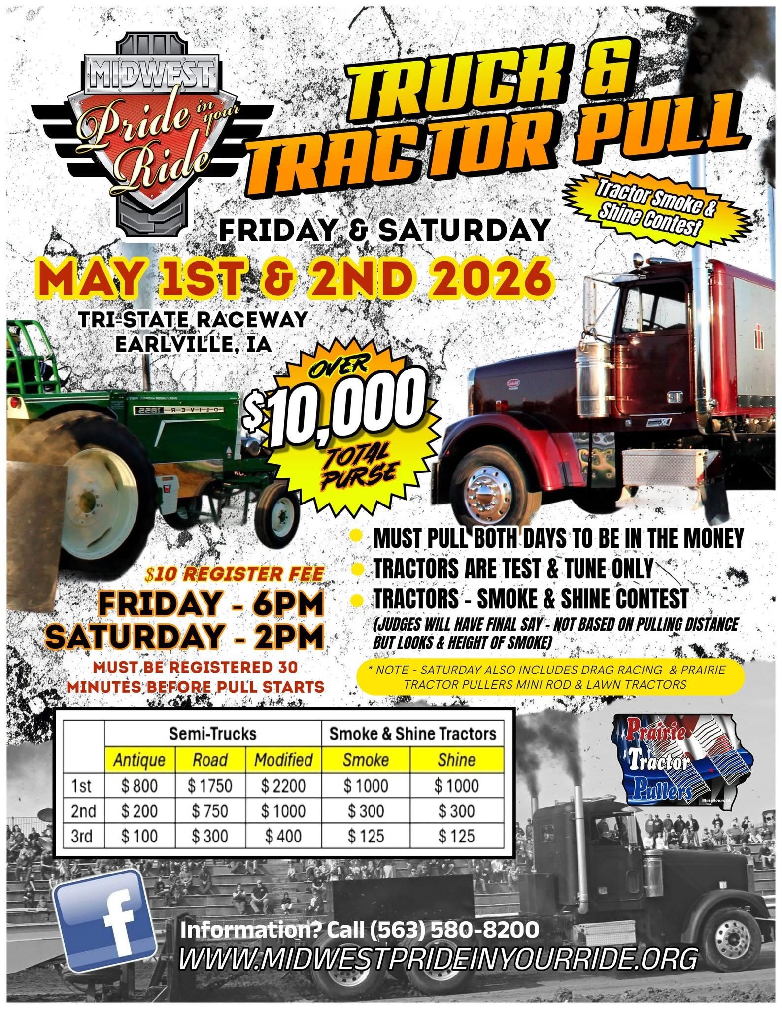 The Midwest Pride In Your Ride Truck and Tractor Show is a 2 day event held the 1st weekend in May at the Tri-State Raceway in Earlville, Iowa. The show will feature working class show trucks (semis) and antique farm tractors from our area, as well as many from across the Midwest. There will be a truck pull and light show Friday night and live auction and truck drag racing on Saturday and much more.